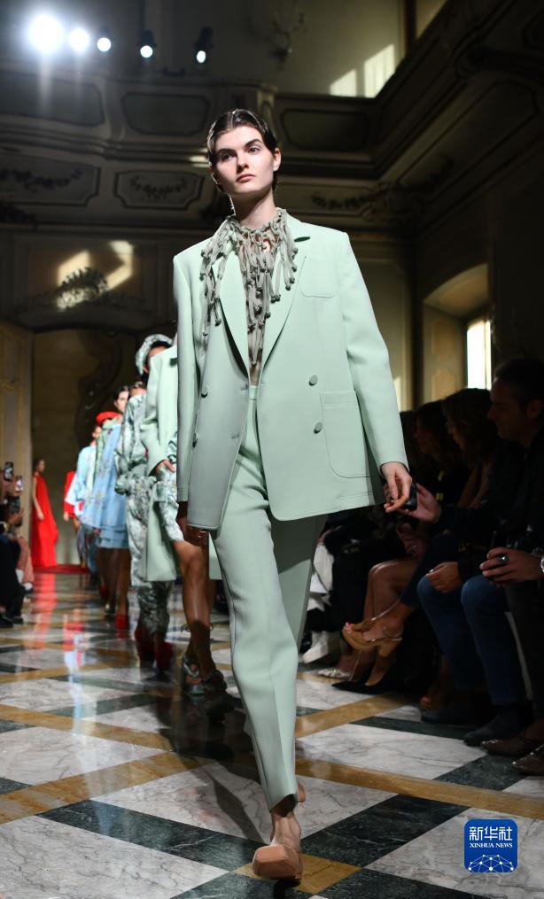 9月24日,模特在意大利米兰时装周上展示含有贵州苗绣元素的设计时装。 9月24日,“中国苗·艺术展”亮相2024春夏米兰时装周。千百年来,苗族群众用针当笔、用线为墨,将自然万物、民族历史绣在服饰上,苗绣也因此被称为“穿在身上的‘活化石’”。 新华社记者 金马梦妮 摄 |
