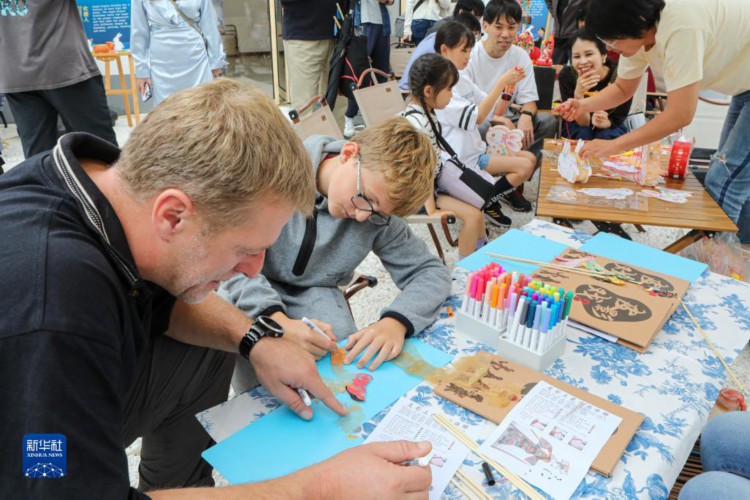 9月24日,在娄塘塌饼非遗传承馆,外国友人体验画皮影。 当日,以“老外看嘉定·相约在娄塘”为主题的中秋联谊系列活动在上海市嘉定区娄塘古镇举行。活动邀请外国友人体验捏面人、画扇面、画皮影和吹糖人等一系列传统民俗文化项目,并欣赏传统民乐演出。 新华社记者 辛梦晨 摄