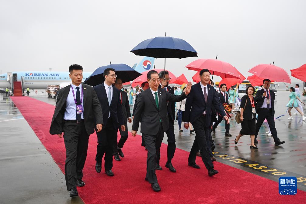 韩国总理韩德洙抵达杭州