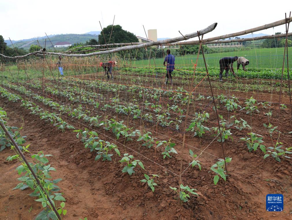 9月19日,当地员工在尼日利亚阿布贾的中国援尼日利亚农业技术示范中心种植蔬菜。