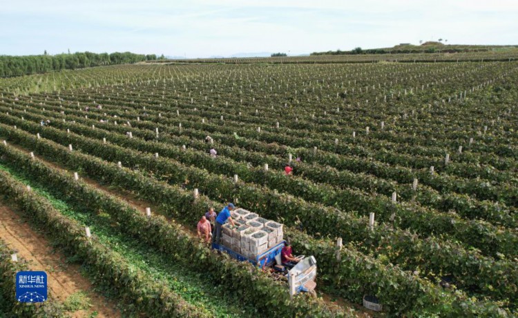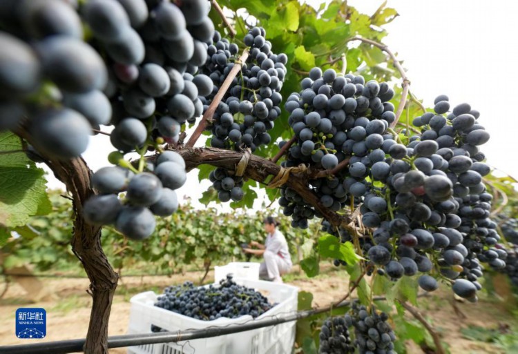 9月25日,河北省卢龙县卢龙镇一家葡萄酒企业的工人在酿酒葡萄种植基地采摘酿酒葡萄。 近日,河北省卢龙县卢龙镇的4000多亩酿酒葡萄进入成熟期,农民们开始进行采收,向酿酒企业销售,田间呈现出一派繁忙的景象。近年来,卢龙县卢龙镇依托当地葡萄酒酿造企业优势,引导农民因地制宜发展酿酒葡萄种植,促进农民增收,助力乡村振兴。 新华社记者杨世尧摄