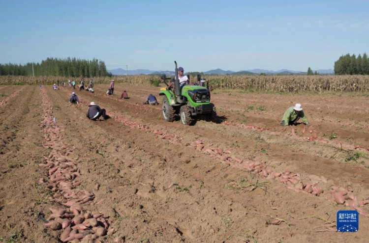 9月25日,河北省卢龙县卢龙镇一家红薯种植合作社的社员在收获红薯。 金秋时节,河北省卢龙县农民抢抓农时收获红薯,今年全县红薯种植面积达12万亩。近年来,当地政府根据辖区沙质土壤透水透气性好的特点,引导农民采取“合作社+农户”的模式,规模化发展红薯种植,并成立多家红薯产品深加工企业,逐步探索出富有特色的“甜蜜”致富路。 新华社记者 杨世尧 摄