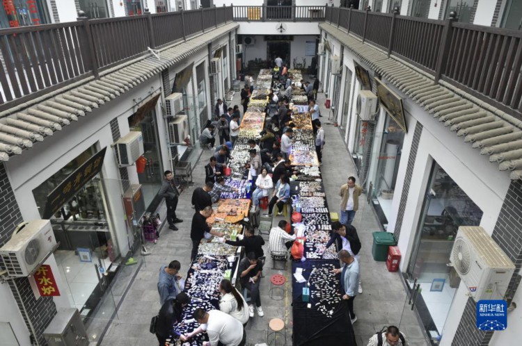 9月25日在禹州市神垕钧瓷工业文化园拍摄的古玩市场。 当日,第十二届禹州钧瓷文化旅游节开幕式在河南省禹州市神垕钧瓷文化主题公园举行。此次文化旅游节将举行中国钧瓷暨美术陶瓷博览会、陶瓷雕塑大赛、非遗大集、钧瓷研学游、项目推介暨签约仪式等多项活动。 河南禹州是钧瓷的原产地,素有“钧都”美誉。目前,全市共有钧瓷企业200余家,年产销钧瓷220多万件(套),年产值20多亿元。 新华社记者 鲁鹏 摄 |