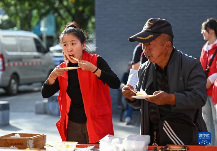 9月26日,市民在第七届烧卖美食文化创意展示大赛上品尝烧卖。 当日,第七届烧卖美食文化创意展示大赛在内蒙古呼和浩特市玉泉区大盛魁文创园北区广场开幕,活动以“非遗美食唤醒文化记忆”为主题,吸引市民游客观看体验烧卖非遗展示、厨艺技能比赛、文体惠民演出等活动,迎接中秋佳节的到来。活动将持续至9月30日。 新华社记者 贝赫 摄