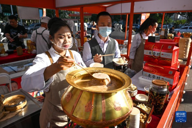 9月26日拍摄的第七届烧卖美食文化创意展示大赛现场。 当日,第七届烧卖美食文化创意展示大赛在内蒙古呼和浩特市玉泉区大盛魁文创园北区广场开幕,活动以“非遗美食唤醒文化记忆”为主题,吸引市民游客观看体验烧卖非遗展示、厨艺技能比赛、文体惠民演出等活动,迎接中秋佳节的到来。活动将持续至9月30日。 新华社记者 贝赫 摄