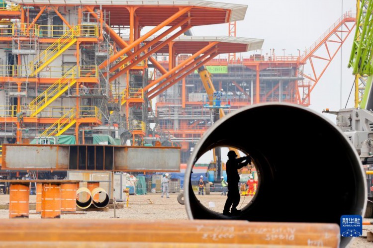 10月7日,工人在海油工程天津智能化制造基地平台建造现场进行打磨作业。 中秋、国庆“双节”假期结束,各地企业开足马力,生产一线一派热火朝天的景象。 新华社发(杜鹏辉 摄)