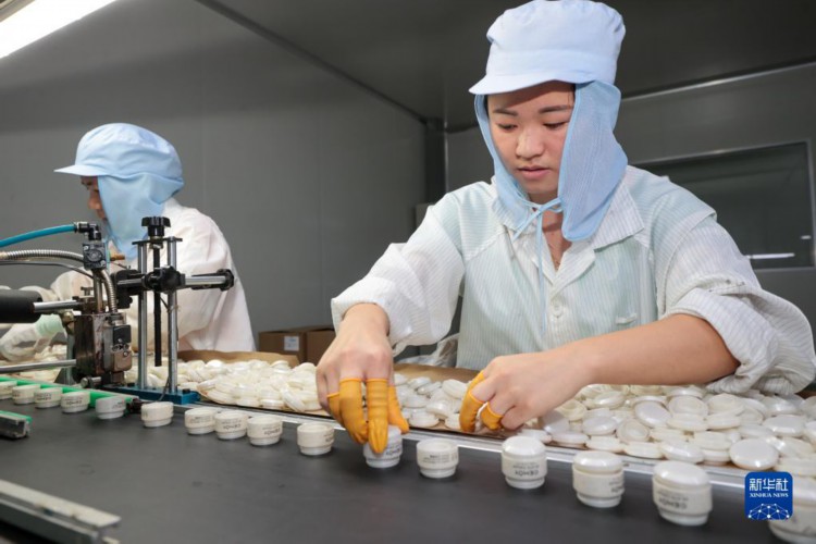 10月7日,工人在浙江省湖州市吴兴区埭溪镇一家化妆品企业工作。 中秋、国庆“双节”假期结束,各地企业开足马力,生产一线一派热火朝天的景象。 新华社发(何伟卫 摄)