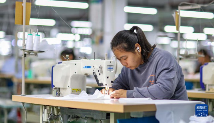 10月7日,工人在贵州省毕节市纳雍经济开发区毕节市晶煌制衣有限公司加工车间工作。 中秋、国庆“双节”假期结束,各地企业开足马力,生产一线一派热火朝天的景象。 新华社发(周啟刚 摄)