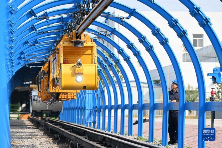 10月7日,工人在石家庄装备制造产业园石煤机公司调试无人驾驶锂电单轨吊。 中秋、国庆“双节”假期结束,各地企业开足马力,生产一线一派热火朝天的景象。 新华社发(陈其保 摄)