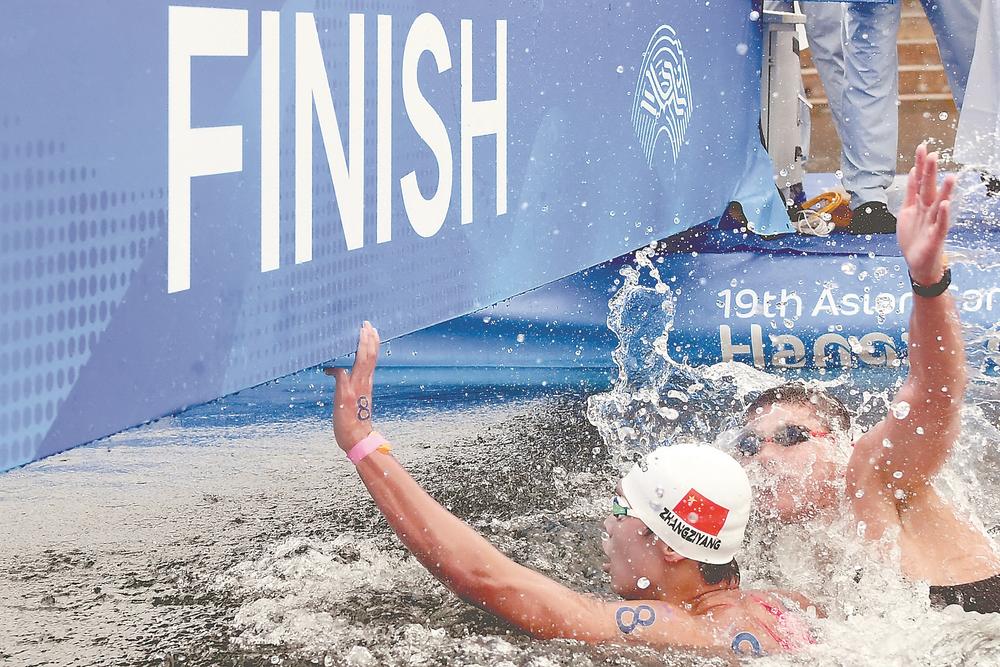 在今年日本福冈举行的世锦赛上,兰天辰以2小时37秒5的成绩获得马拉松游泳10公里的第41名。在不到三个月后的亚运赛场上,兰天辰已经将自己的成绩提高到了1小时55分46秒2。亚运摘银后,兰天辰将目标瞄准了巴黎,希望去更高的舞台证明自己的实力。(本报记者 肖榕/文 林熙/图)