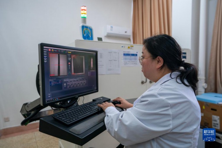 10月11日,云南大学古生物研究院“节肢动物演化研究”课题组成员麦慧娟在调整CT扫描仪参数。
