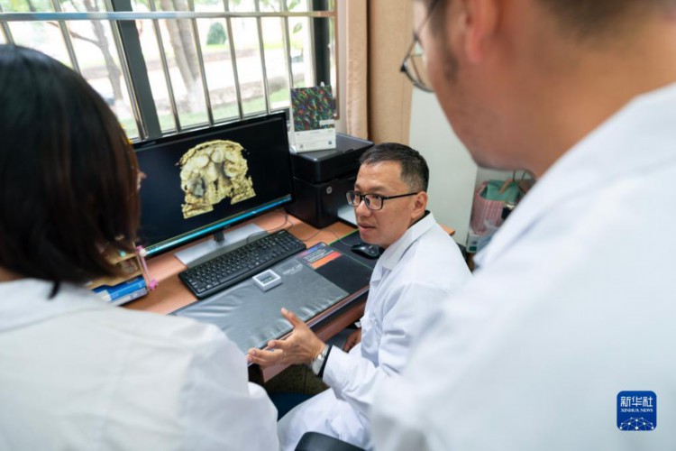 10月11日是国际化石日。在云南大学古生物研究院,研究员刘煜带领着一个青年科学家团队运用显微CT断层扫描等先进技术给5亿多年前的古生物化石拍CT片。这一过程如同医院给病人拍CT一样,让X光穿透石头,对化石进行360度全方位无损扫描,再经计算机处理得到接近完整的三维信息。这些先进技术手段的运用在增加信息获取量的同时,又能最大限度确保化石完整性,减少对化石的破坏。