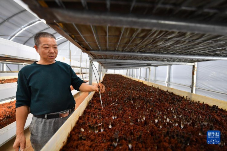 10月18日,在湘潭市雨湖区姜畲镇白鹭湖村,村民在一个由闲置农房改造而成的“5G智慧小菇房”里查看食用菌生长情况。 近年来,湖南省湘潭市雨湖区姜畲镇依托“5G智慧食用菌产业”项目,运用数字技术帮助当地村民建设“5G智慧小菇房”,采取“公司+合作社+农户”的模式,通过5G系统进行实时精确控制和远程技术指导,让村民在家门口实现食用菌的智能化、标准化种植,进一步盘活当地闲置农房,带动村民增收致富,助推乡村产业振兴。 新华社记者 陈泽国 摄