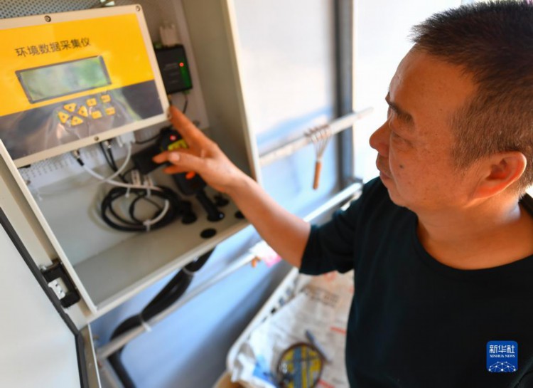10月18日,在湘潭市雨湖区姜畲镇泉塘子村,技术人员在“5G智慧小菇房”查看环境数据采集仪运行情况。 近年来,湖南省湘潭市雨湖区姜畲镇依托“5G智慧食用菌产业”项目,运用数字技术帮助当地村民建设“5G智慧小菇房”,采取“公司+合作社+农户”的模式,通过5G系统进行实时精确控制和远程技术指导,让村民在家门口实现食用菌的智能化、标准化种植,进一步盘活当地闲置农房,带动村民增收致富,助推乡村产业振兴。 新华社记者 陈泽国 摄