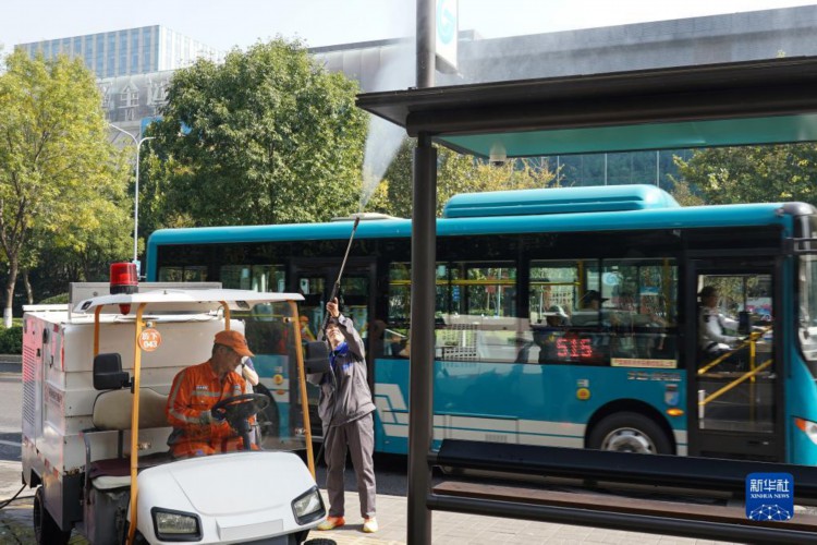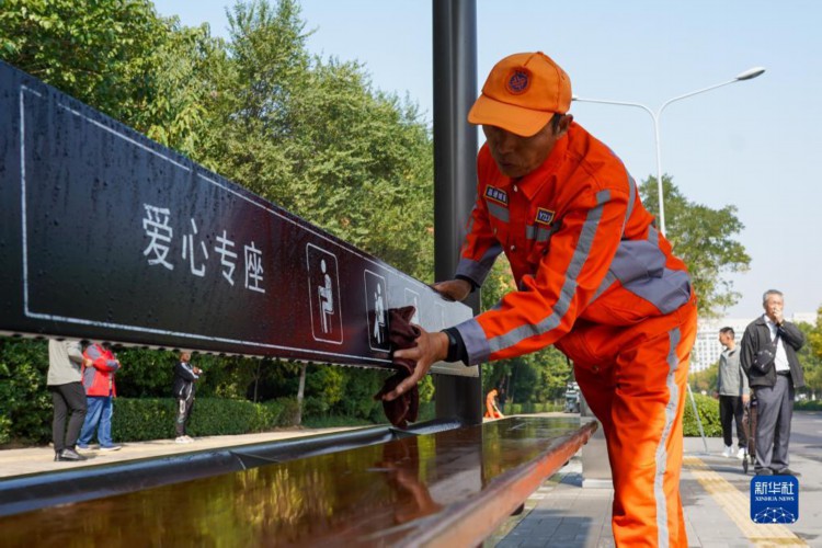 10月17日,保洁人员在清理公交站台设施。 “城市家具”作为城市的重要组成部分,小到垃圾箱,大到公共厕所、公交站台,与市民生活息息相关。日前,山东省济南市城管局通过“城市家具一体化综合保洁”新模式,采取分级分类、综合一体的作业方式,作业范围由平面向立面延伸,由局部向整体扩展,道路深度保洁率达90%以上,城市主次道路机扫率、洒水率均达到100%。 新华社记者 朱峥 摄