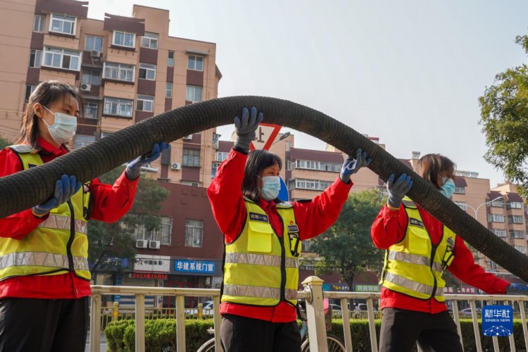 10月17日,济南市城肥清运管理一处女子清疏班职工在清理城肥。 “城市家具”作为城市的重要组成部分,小到垃圾箱,大到公共厕所、公交站台,与市民生活息息相关。日前,山东省济南市城管局通过“城市家具一体化综合保洁”新模式,采取分级分类、综合一体的作业方式,作业范围由平面向立面延伸,由局部向整体扩展,道路深度保洁率达90%以上,城市主次道路机扫率、洒水率均达到100%。 新华社记者 朱峥 摄