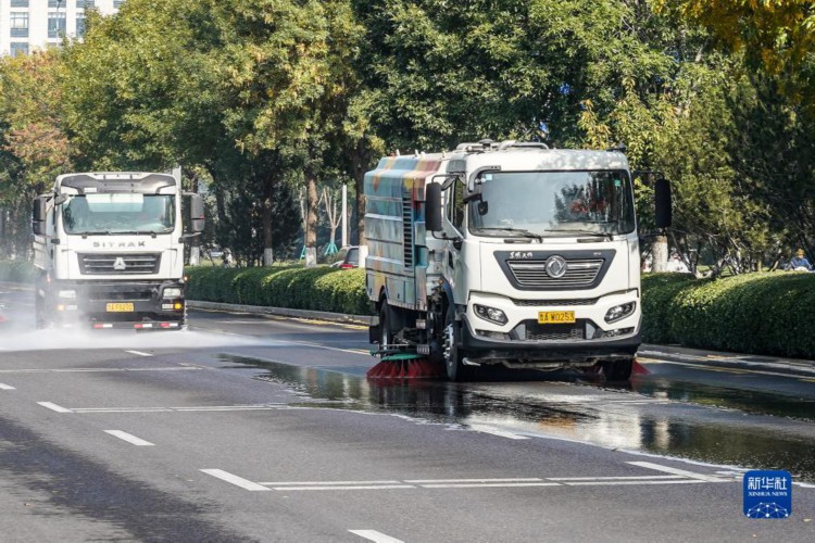 10月17日,清扫车辆在进行机械联合精细化保洁作业。 “城市家具”作为城市的重要组成部分,小到垃圾箱,大到公共厕所、公交站台,与市民生活息息相关。日前,山东省济南市城管局通过“城市家具一体化综合保洁”新模式,采取分级分类、综合一体的作业方式,作业范围由平面向立面延伸,由局部向整体扩展,道路深度保洁率达90%以上,城市主次道路机扫率、洒水率均达到100%。 新华社记者 朱峥 摄