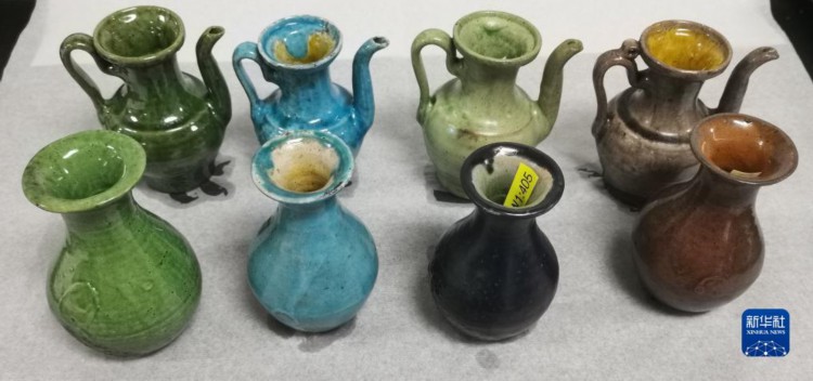 这是从沉船遗址提取出的珐华瓶、执壶。 我国水下考古工作者已在南海西北陆坡一号、二号沉船遗址确认两处沉船的保存状况,通过海洋物理探测、载人潜水器水下调查以及三维影像和激光扫描记录等,提取出水瓷器、陶器、原木等近580件(套),实证了中国先民开发、利用、往来南海的历史事实。 新华社发(国家文物局供图)
