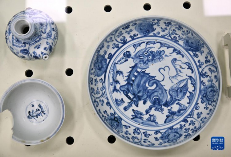 这是从沉船遗址提取出的部分文物(10月10日摄)。 我国水下考古工作者已在南海西北陆坡一号、二号沉船遗址确认两处沉船的保存状况,通过海洋物理探测、载人潜水器水下调查以及三维影像和激光扫描记录等,提取出水瓷器、陶器、原木等近580件(套),实证了中国先民开发、利用、往来南海的历史事实。 新华社记者 郭程 摄