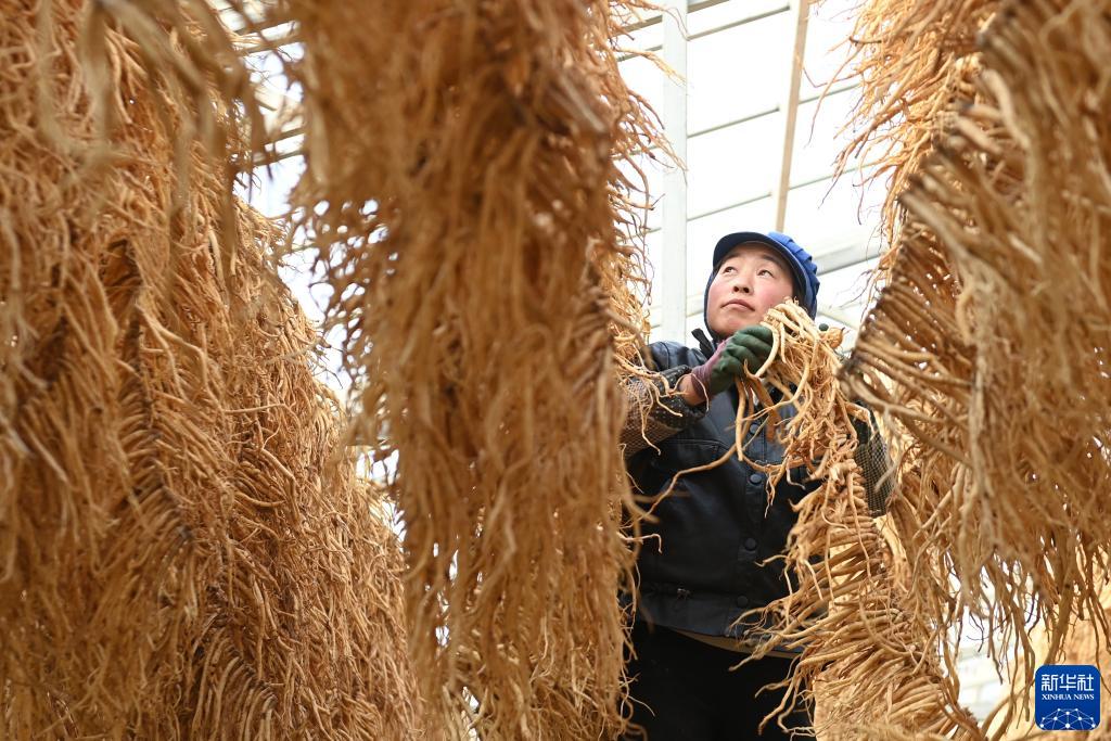 金秋时节,甘肃省定西市岷县的党参、黄芪等中药材陆续丰收,当地中药材企业组织工人加工晾晒。岷县位于甘肃省南部,是西北中药材主产区之一,全县中药材种植面积65万亩左右。