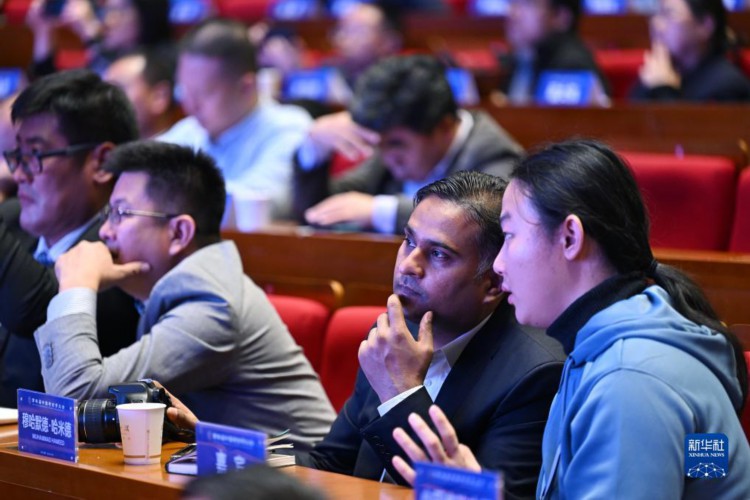 10月23日,与会外国学者在大会上聆听嘉宾发言。