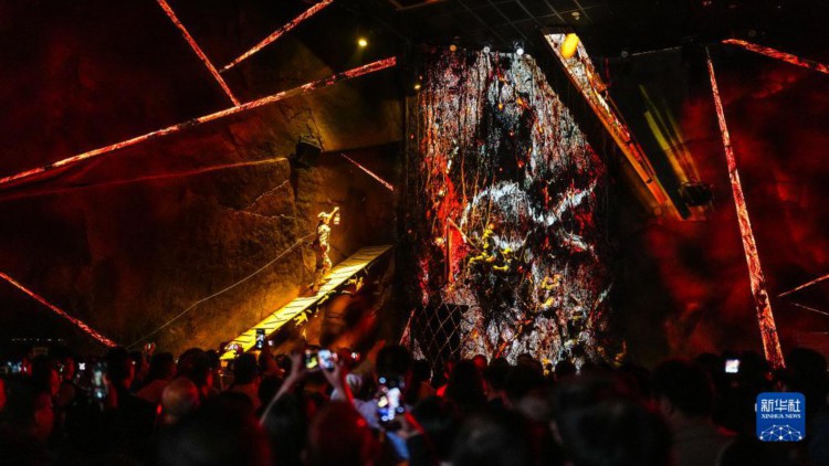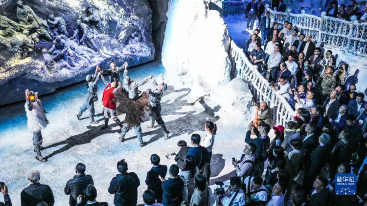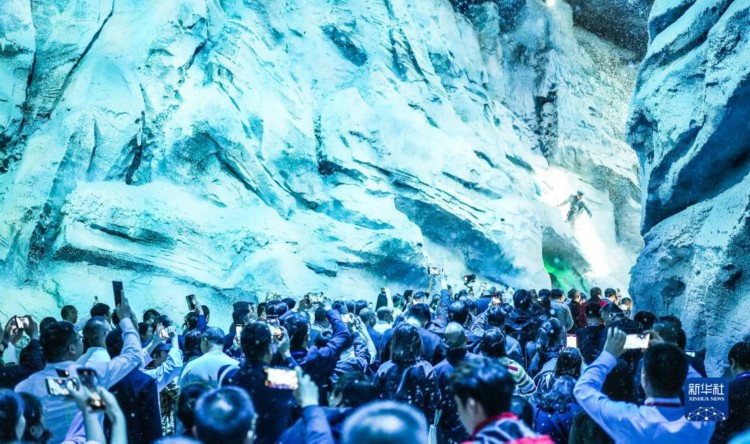 10月23日,观众准备进入“红飘带”数字体验馆内。 10月22日,以长征为主题的数字体验馆——“红飘带”项目在贵州省贵阳市开始试运营,现场利用全息影像、三维声场等新技术再现伟大长征。“红飘带”项目是贵州推进长征国家文化公园建设的重要标志性工程,通过“艺术+科技”的形式,讲述长征故事,传承红色基因。 新华社记者 胡智轩 摄