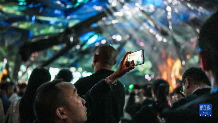 10月23日,观众在“红飘带”数字体验馆内观看体验长征故事。 10月22日,以长征为主题的数字体验馆——“红飘带”项目在贵州省贵阳市开始试运营,现场利用全息影像、三维声场等新技术再现伟大长征。“红飘带”项目是贵州推进长征国家文化公园建设的重要标志性工程,通过“艺术+科技”的形式,讲述长征故事,传承红色基因。 新华社记者 胡智轩 摄