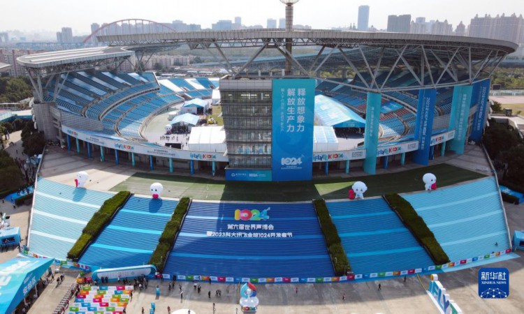 10月24日拍摄的第六届世界声博会暨2023科大讯飞全球1024开发者节活动现场(无人机照片)。 当日,第六届世界声博会暨2023科大讯飞全球1024开发者节在安徽省合肥市开幕。本届声博会为期6天,现场设有科技馆、工业馆、行业馆、教育馆、生活馆、生态馆等多个主题展馆,展出人工智能领域最新科技成果及应用。 新华社记者 周牧 摄 |