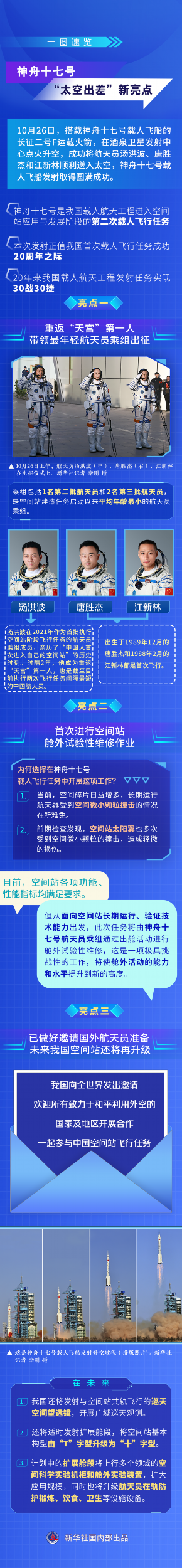 新华社北京10月26日电 题:神舟十七号出发!“太空出差”新看点