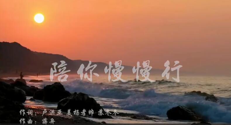| 429589817fafc4b454da3ee64cdd19ea 作词:卢洪亚、美杨孝帅、苏东东 作曲:蒋舟 演唱:吴仪君 创作介绍:《陪你慢慢行》是一首写给父亲的歌曲,孩子一直以为爸爸是最高的山,能为自己遮风挡雨,但在某个突然的瞬间,发现爸爸也会衰老,而自己已经不知不觉长大,孩子感慨之余,希望开始承担起家庭的责任,满满的心疼与温情,引发网友的共鸣。 《陪你慢慢行》是台湾女生美杨孝帅提供的创意。她与大陆的几位音乐人共同探讨,大家通过网络沟通交流,作词、谱曲、演唱、制作,经过无数次的隔空对话碰撞,才“云创作”了这首满满闽南味的歌曲。 后这首歌被多人翻唱。