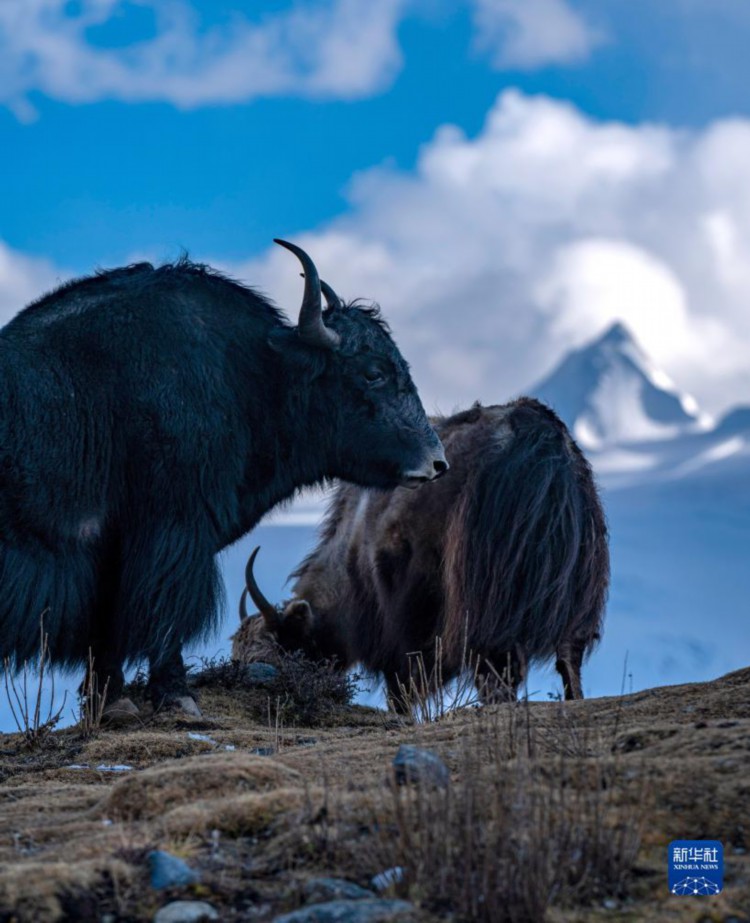 牦牛在萨普雪山脚下的草场上吃草(10月28日摄)。