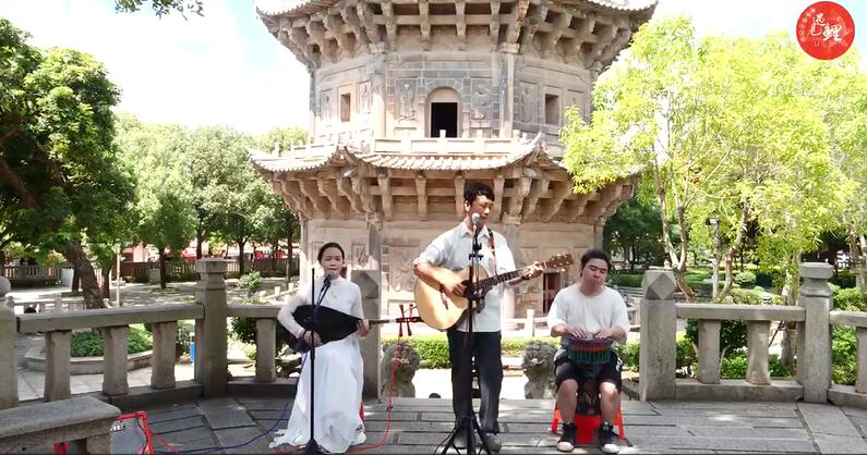 东西两塔站开元,威远钟楼立中山, 南洋风吹车子窗,骑楼已是百年工, 古早南门有船入港,海上丝绸万里航, 各路神仙入庙堂,自古遍地是圣人, 面亁糊醋肉油条葱,一碗蠔仔煎一个粽, 南音讲古茶清香,甜点蜜味请客人。