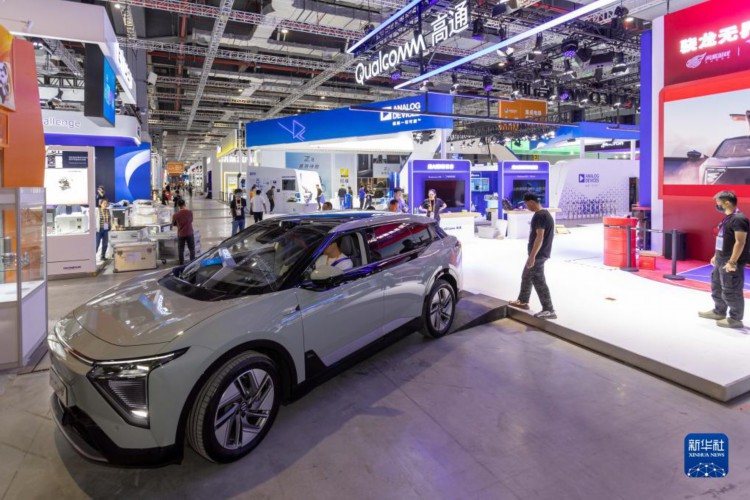 11月2日,一辆搭载高通芯片的智能电动汽车准备驶向高通展位。