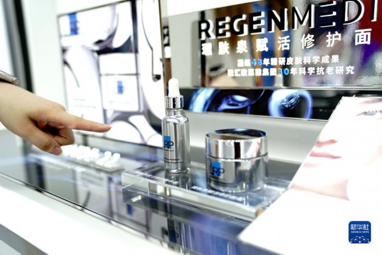 11月5日,在第六届进博会消费品展区欧莱雅展台,工作人员介绍一款全球首发的新产品。 当日,第六届中国国际进口博览会在国家会展中心(上海)开幕,众多首发首展的新科技、新成果、新展品亮相本届进博会。 新华社记者 张建松 摄