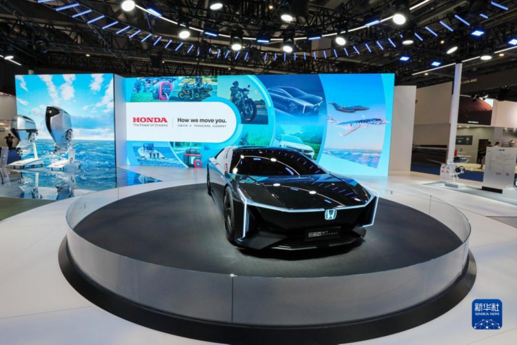 11月5日在第六届进博会汽车展区拍摄的本田概念车型e:N GT Concept。 当日,第六届中国国际进口博览会在国家会展中心(上海)开幕,众多首发首展的新科技、新成果、新展品亮相本届进博会。 新华社记者 辛梦晨 摄