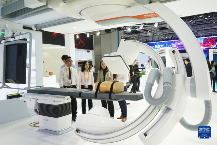 11月5日在第六届进博会医疗器械及医药保健展区西门子展台拍摄的全球首款量子能谱血管造影系统。 当日,第六届中国国际进口博览会在国家会展中心(上海)开幕,众多首发首展的新科技、新成果、新展品亮相本届进博会。 新华社记者 金皓原 摄