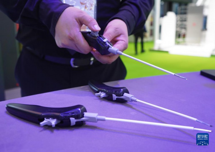 11月5日在第六届进博会医疗器械及医药保健展区Arthrex展台拍摄的半月板全缝线缝合系统。 当日,第六届中国国际进口博览会在国家会展中心(上海)开幕,众多首发首展的新科技、新成果、新展品亮相本届进博会。 新华社记者 金皓原 摄