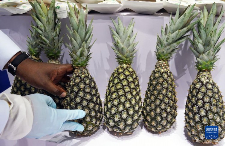 11月5日在第六届进博会食品及农产品展区拍摄的首次亮相中国的贝宁菠萝。 当日,第六届中国国际进口博览会在国家会展中心(上海)开幕,众多首发首展的新科技、新成果、新展品亮相本届进博会。 新华社记者 刘颖 摄 |