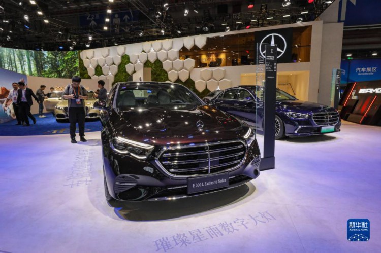 11月5日,在第六届进博会汽车展区,梅赛德斯-奔驰全新长轴距E级车E300L轿车迎来中国首展。 当日,第六届中国国际进口博览会在国家会展中心(上海)开幕,众多首发首展的新科技、新成果、新展品亮相本届进博会。 新华社记者 辛梦晨 摄
