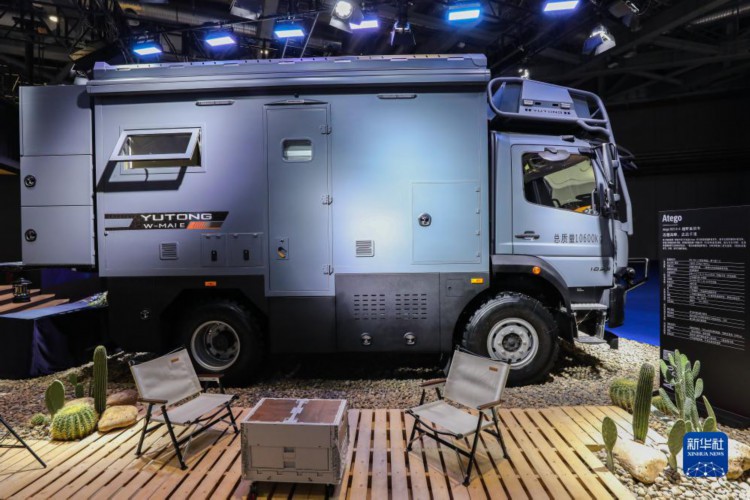11月5日,在第六届进博会汽车展区,奔驰Atego 1023 4x4越野旅居车迎来中国首展。 当日,第六届中国国际进口博览会在国家会展中心(上海)开幕,众多首发首展的新科技、新成果、新展品亮相本届进博会。 新华社记者 辛梦晨 摄