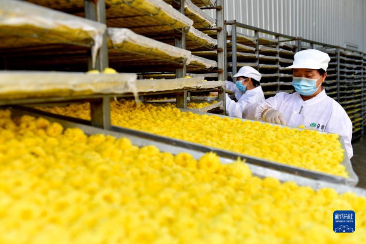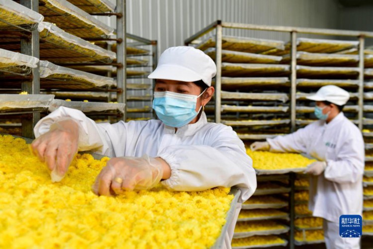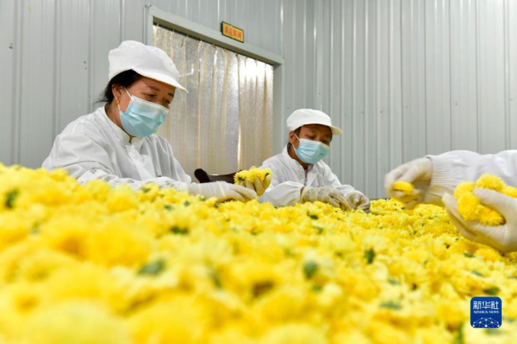 11月4日,在位于嘉祥县的山东朵云清农业股份有限公司,工作人员在加工有机菊花。 近年来,山东省济宁市嘉祥县大力发展有机菊花产业,通过农业龙头企业带动,提升品牌价值。目前,嘉祥县有机菊花种植面积近万亩,菊花产业成为农民增收、农业增效和推动乡村振兴的新动能。 新华社记者 郭绪雷 摄