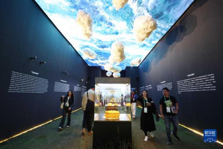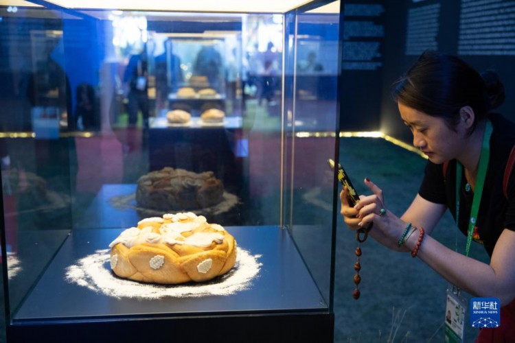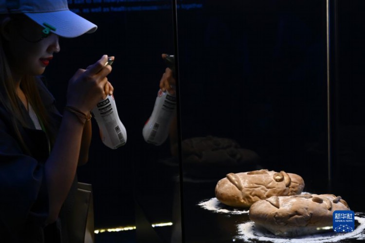11月6日,参观者在第六届进博会国家展塞尔维亚展台欣赏展出的塞尔维亚面包。 第六届进博会国家展全面恢复线下举办,洪都拉斯、塞尔维亚、越南、南非、哈萨克斯坦作为本届进博会主宾国在国家展亮相。 新华社记者 金良快 摄