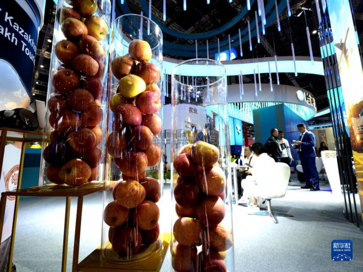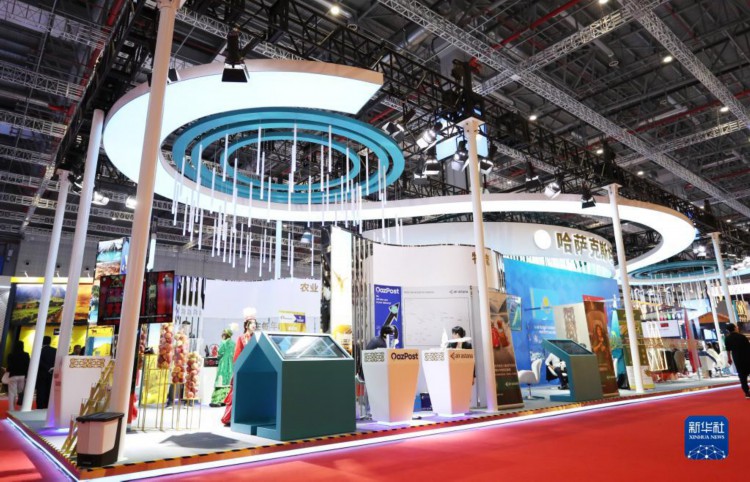 11月6日拍摄的第六届进博会国家展哈萨克斯坦展台。 第六届进博会国家展全面恢复线下举办,洪都拉斯、塞尔维亚、越南、南非、哈萨克斯坦作为本届进博会主宾国在国家展亮相。 新华社记者 张建松 摄
