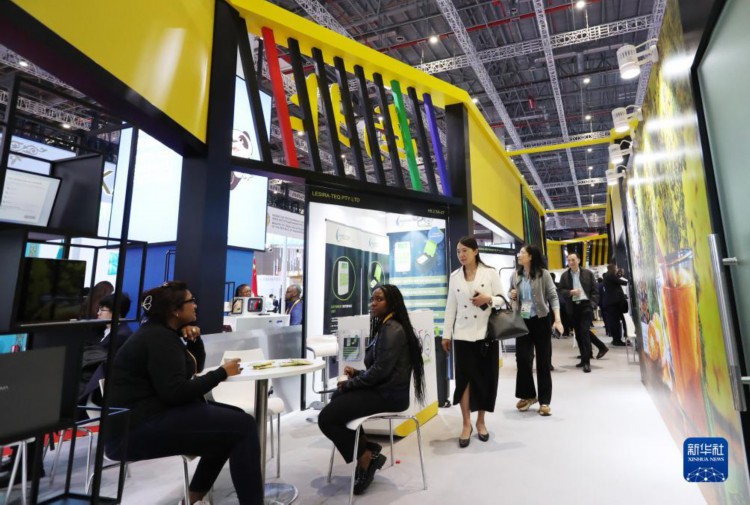 11月6日,参观者在第六届进博会国家展南非展台参观。 第六届进博会国家展全面恢复线下举办,洪都拉斯、塞尔维亚、越南、南非、哈萨克斯坦作为本届进博会主宾国在国家展亮相。 新华社记者 方喆 摄