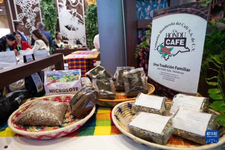 11月6日,参观者在第六届进博会国家展洪都拉斯展台咨询咖啡豆等展品信息。 第六届进博会国家展全面恢复线下举办,洪都拉斯、塞尔维亚、越南、南非、哈萨克斯坦作为本届进博会主宾国在国家展亮相。 新华社记者 金立旺 摄