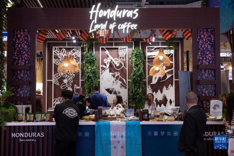 这是11月6日拍摄的第六届进博会国家展洪都拉斯展台外景。 第六届进博会国家展全面恢复线下举办,洪都拉斯、塞尔维亚、越南、南非、哈萨克斯坦作为本届进博会主宾国在国家展亮相。 新华社记者 方喆 摄