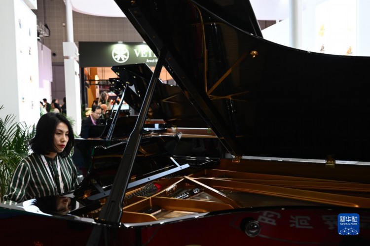 11月6日,观众弹奏展出的斯坦威钢琴。 第六届进博会消费品展区共有来自76个国家和地区的500多家企业参展。其中,世界500强及行业龙头企业57家,全球知名智能家电品牌纷纷亮相,世界时尚高端消费品、美妆及日化用品、体育用品巨头齐聚一堂。 新华社记者 金良快 摄