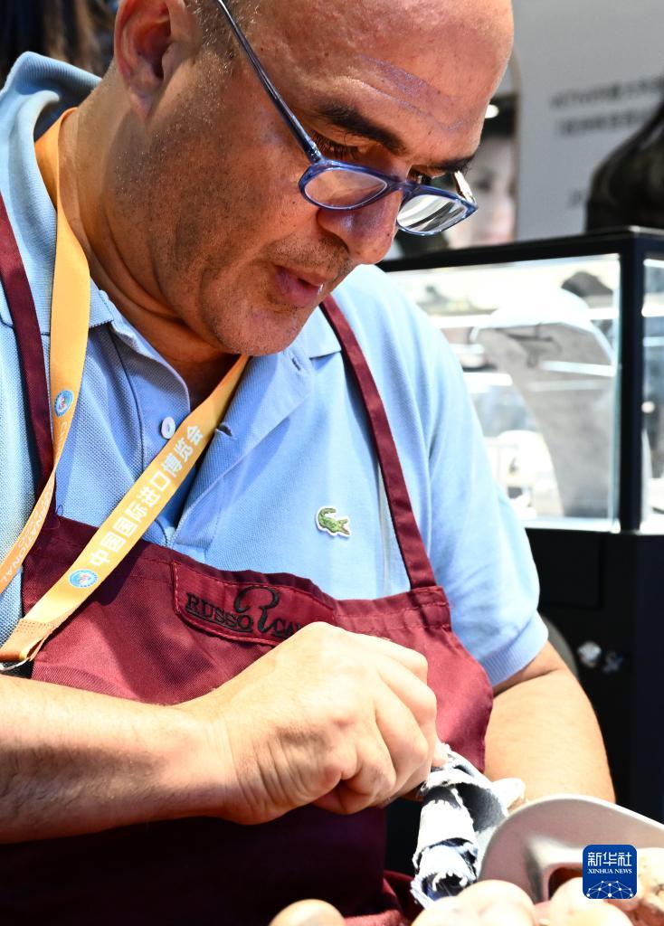 11月6日,奇罗·埃斯波西托在进博会上。 年近六旬的意大利贝雕师奇罗·埃斯波西托出生于雕刻世家,从7岁起便开始学习使用雕刻工具,其作品在意大利和国际市场小有名气。继2019年和2020年进博会之后,奇罗第三次来到进博会。他说,希望能通过进博会这个平台,让东西方文化碰撞出火花,传统技艺焕发新生命。 新华社记者 金良快 摄