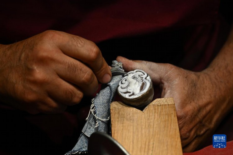 11月6日,奇罗·埃斯波西托在进博会上雕刻。 年近六旬的意大利贝雕师奇罗·埃斯波西托出生于雕刻世家,从7岁起便开始学习使用雕刻工具,其作品在意大利和国际市场小有名气。继2019年和2020年进博会之后,奇罗第三次来到进博会。他说,希望能通过进博会这个平台,让东西方文化碰撞出火花,传统技艺焕发新生命。 新华社记者 金良快 摄