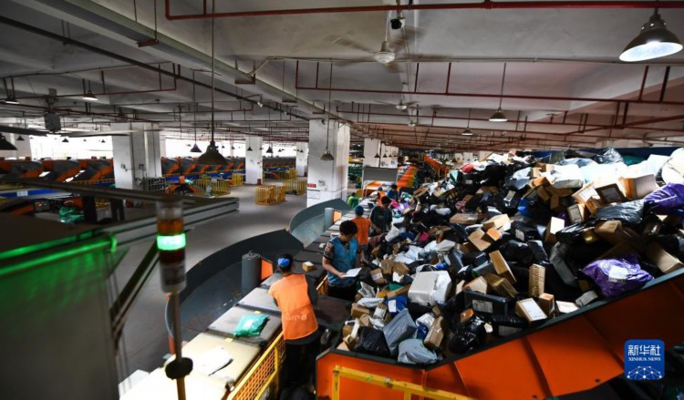 11月6日,工作人员在中国邮政集团有限公司海口邮区中心忙碌。